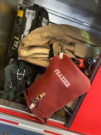This is my take on an SCBA mask bag. Built to last, all leather shell. These are lined with ballistic nylon and won’t scratch your mask lens. Plus has a brass closure system that can be opened with one hand. Open at the flap so you can keep you regulator connected and still protect your mask. Custom embroidery price may vary based on your design. Price above reflects single line and last name.
